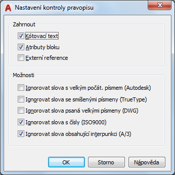 Určuje specifické možnosti textu, které budou ve výkresu kontrolovány.