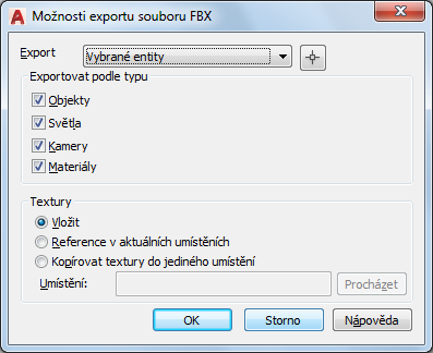 Určuje, co se má do souboru FBX exportovat a jak se mají exportovat textury.