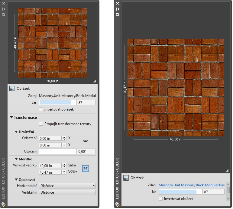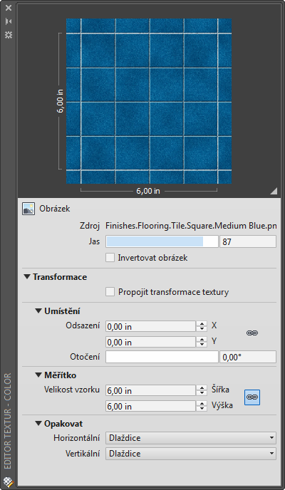 | Typ textury | Pozice | Změna měřítka | Opakovat |