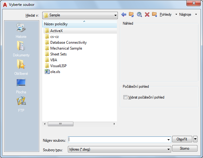 Zobrazí dialog Částečně otevřít. Můžete otevřít a načíst část výkresu, která obsahuje geometrii v určitém pohledu nebo v určité hladině. Příkaz ČOTEVŘI lze použít pouze pro výkresy ve formátu aplikace AutoCAD 2004 nebo novější verze.