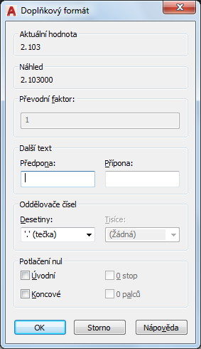 Nastavuje potlačení úvodních i koncových nul a stop a palců s nulovou hodnotou.
