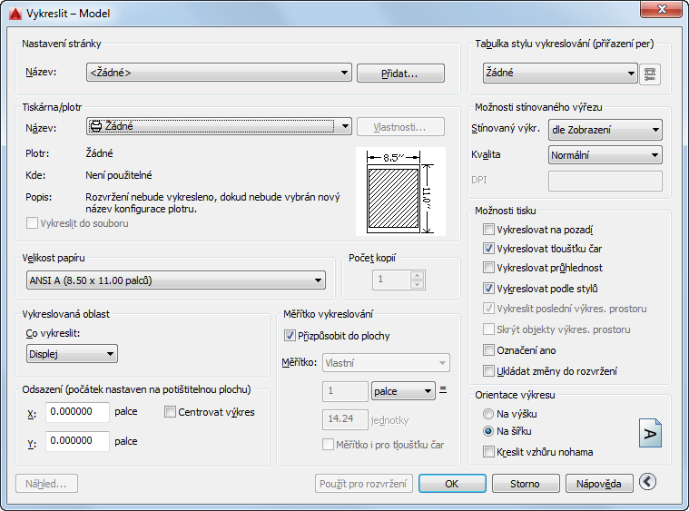 Dříve bývalo zvykem tisknout text na tiskárnách a vykreslovat výkresy na plotrech. Nyní můžete provést obojí u obou možností. Tato příručka tedy bude používat pojmy tisk a vykreslení pro oba postupy.