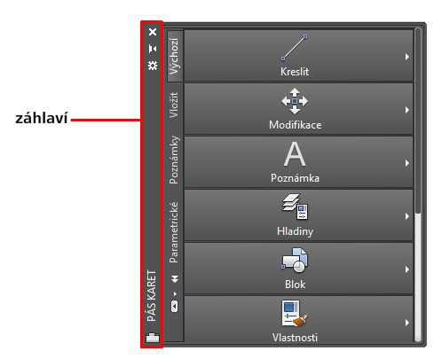 - Klikněte na záhlaví pásu a přetáhněte uvolněný pás karet k levému okraji, k pravému okraji nebo do horní části kreslicí plochy.