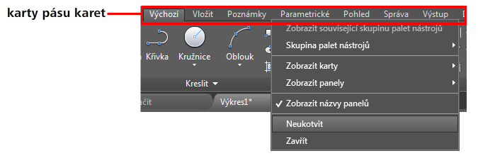 - Klikněte pravým tlačítkem na pás karet a vyberte položku Odemknout.