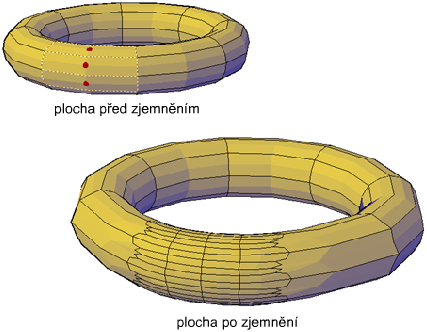 Zjemnění plochy sítě nemá vliv na celkovou úroveň vyhlazení objektu sítě. Narozdíl od zjemněných objektů sítě lze zjemněné plochy ihned znovu zjemnit. Pomocí zjemnění plochy sítě lze zaostřit na menší oblasti a vytvářet podrobnější modely.