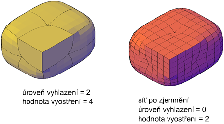 Zjemnit lze libovolnou síť, u které je úroveň vyhlazení nastavena na hodnotu 1 nebo vyšší.
