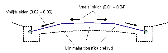 Střechovitý sklon (lom v podélném spádu) na Překrytí |