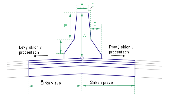 | Směr sklonu krajnice | Určuje, zda je sklon krajnice od vrcholu střechovitého sklonu vozovky nebo směrem k němu |