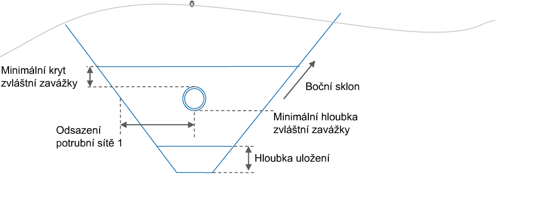 | Minimální krytí zvláštní zavážkou | Minimální velikost krytí zvláštní zavážkou uloženého nad největším vnějším průměrem potrubí. | Numerická, kladná | 0.0 |