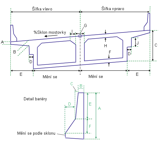 V režimu návrhu tato podsestava nakreslí stavební objekt mostu a bariéry tak, jak určují hodnoty vstupních parametrů.