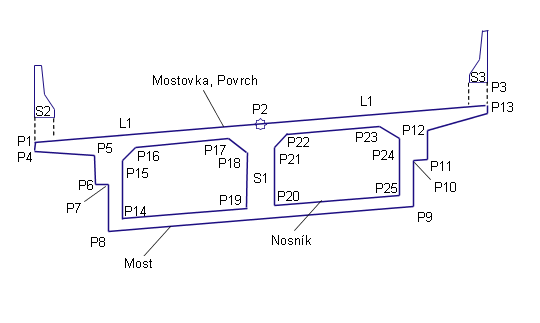 Tato podsestava vytvoří tvar mostu s dvoukomorovým krabicovým nosníkem s volitelnými polovičními bariérami.