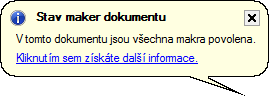 | Nastavení bezpečnosti maker | Stavová ikona | Upozornění při otevření |