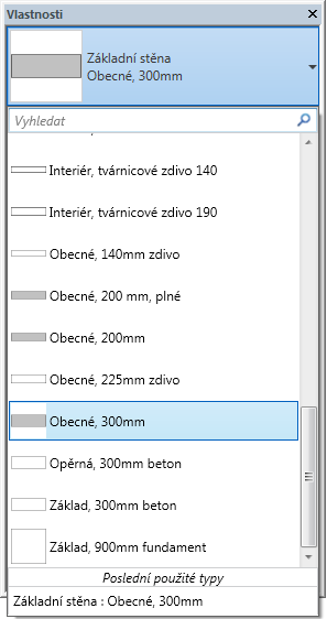 Nástroj Výběr typu identifikuje aktuálně vybraný typ rodiny a umožňuje vybrat v rozevíracím seznamu jiný typ.