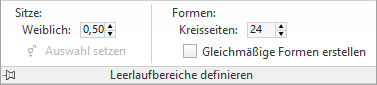 Modifikatorgruppe. Um die Geschlechterverteilung der ausgewählten Sitze zu ändern, legen Sie den Verhältniswert Weiblich in der Erweiterungsgruppe Leerlaufbereiche definieren (siehe unten) fest und klicken dann auf Auswahl setzen. Die roten und blauen Markierungen auf den einzelnen Sitzen geben das Geschlecht und die Blickrichtung der sitzenden Figur an.