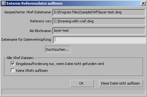 - Löst diese extern referenzierte Datei nicht auf, andere externe Referenzen aus Dateiverknüpfungen werden aber aufgelöst.