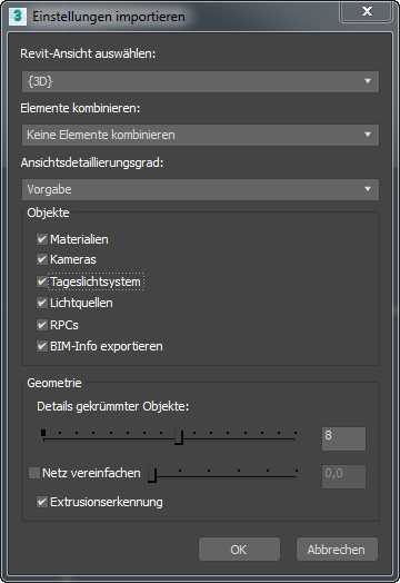 Bietet Optionen für den Import von Revit-Dateien.