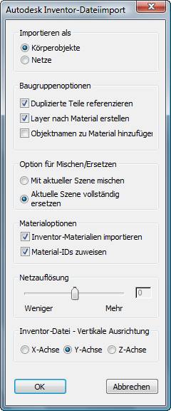 Anmerkung: Die Option zur Einstellung der Netzauflösung ist nur für Modelle verfügbar, die aus Autodesk Inventor ab Version 10 importiert werden.