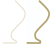 Splines, die bei einer Dicke von 1,0 bzw. 5,0 gerendert wurden