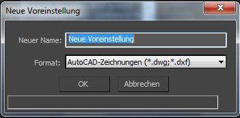 - Geben Sie im Dialogfeld "Neue Voreinstellung" einen Namen für die Voreinstellung ein.