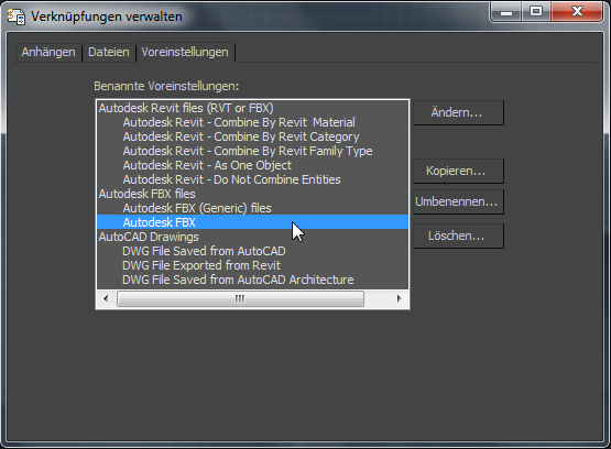 Mithilfe der Voreinstellungen können Sie die Art und Weise, wie Sie Geometrien aus einer verknüpften Datei organisieren, unkompliziert speichern und wiederverwenden.
