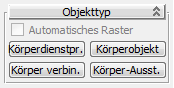 Das Rollout "Objekttyp" verfügt über Steuerelemente zum Bearbeiten, Umwandeln, Kombinieren und Schneiden von Körperobjekten.