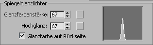 Wenn diese Option aktiviert ist, wird beiden Seiten des Materials ein Spiegelglanzlicht zugewiesen. Wenn diese Option deaktiviert ist, wird nur der Vorderseite des Materials ein Glanzlicht zugewiesen. Vorgabe = Aktiviert.