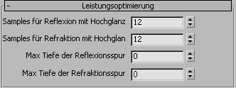 Anmerkung: Es gibt vier mögliche Parameter, aber für jedes Material werden nur die relevanten Einstellungen im Rollout "Leistungsanpassung" angezeigt.