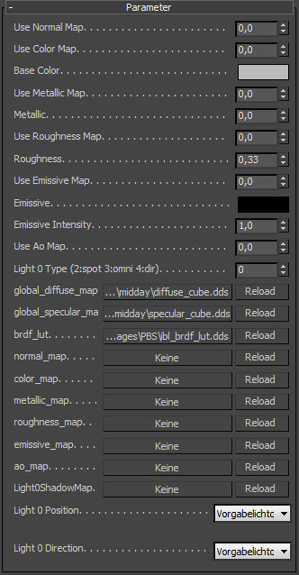 Rollout Parameter für die Vorgabe-Voreinstellung Stingray-Shader