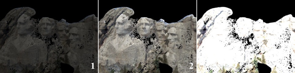 - Gibt die Gesamthelligkeit des Punktwolkenobjekts an. Niedrigere Werte ergeben eine dunklere Oberfläche, höhere Werte eine hellere. Vorgabe = 1.0.