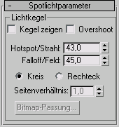 Mit diesen Parametern werden Hotspots und Falloff von Spotlichtern gesteuert.