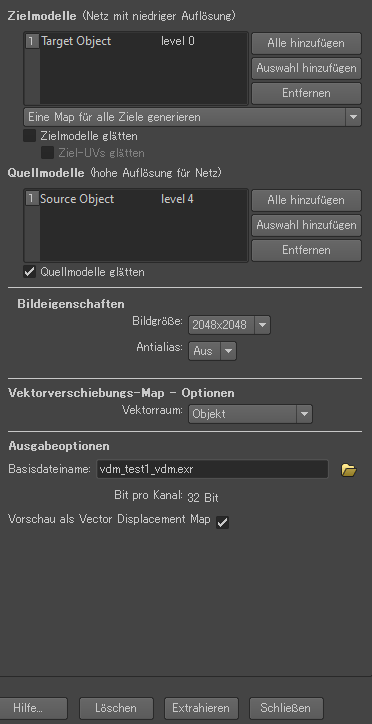 Das Dialogfeld "Textur-Maps extrahieren" wird geöffnet.