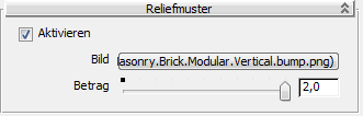Wenn diese Option aktiviert ist, wird ein Reliefmuster auf das Material angewendet. Vorgabe = Aktiviert.
