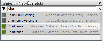 Geben Sie Text in das Feld zum Suchen nach Materialien und Maps ein, deren Namen mit den eingegebenen Buchstaben beginnen. Bei der Suche wird nicht zwischen Groß- und Kleinschreibung unterschieden.