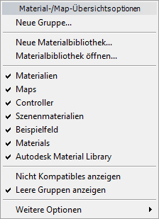 Zeigt allgemeine Optionen für die Verwaltung der Material-/Map-Übersicht an.