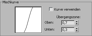 Im Rollout "Mischparameter" ist die Option "Mischbetrag" deaktiviert, wenn diesem Parameter ein Map zugewiesen ist. Ist das Kontrollkästchen "Kurve verwenden" deaktiviert, wird das Misch-Map wie angegeben verwendet. Ist das Kontrollkästchen "Kurve verwenden" aktiviert, können Sie den Verlaufsbeginn des Misch-Maps verschieben, indem Sie ihn in die eine oder andere Richtung versetzen und dadurch die Mischkomponenten mehr oder weniger zum Vorschein bringen.
