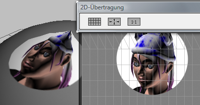 Das Bild, das direkt auf die Kugeloberfläche aufgetragen wird (links), wird im 2D-Malfenster verzerrt dargestellt.