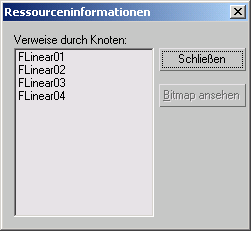Im Dialogfeld "Ressourceninformationen" wird angezeigt, wo ein Bitmap in anderen Materialien oder fotometrischen Verteilungsdateien verwendet wird, und es enthält ein Bild des Bitmaps.