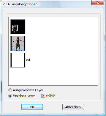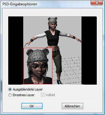 Wenn Sie eine PSD-Datei als Bitmap öffnen, wird ein Dialogfeld angezeigt, in dem Sie die Verwendung des Bilds festlegen können.