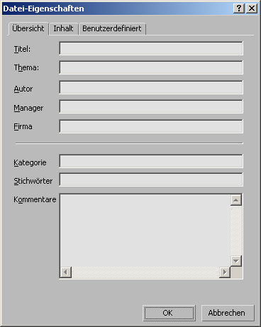 Geben Sie hier einen beliebigen Kommentar ein. Informationen, die Sie im Feld "Beschreibung" des Dialogfelds "Übersicht" eingeben, werden im Feld "Kommentare" angezeigt und umgekehrt.