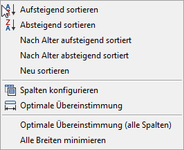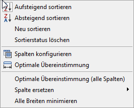 Kontextmenü für Spaltenüberschriften