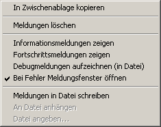 Die anderen Optionen der Protokolldatei sind erst aktiviert, wenn die Option "Meldungen in Datei schreiben" aktiviert ist: