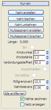 Zeigt die Nähte im Ansichtsfenster an. Im deaktivierten Zustand werden sie ausgeblendet.
