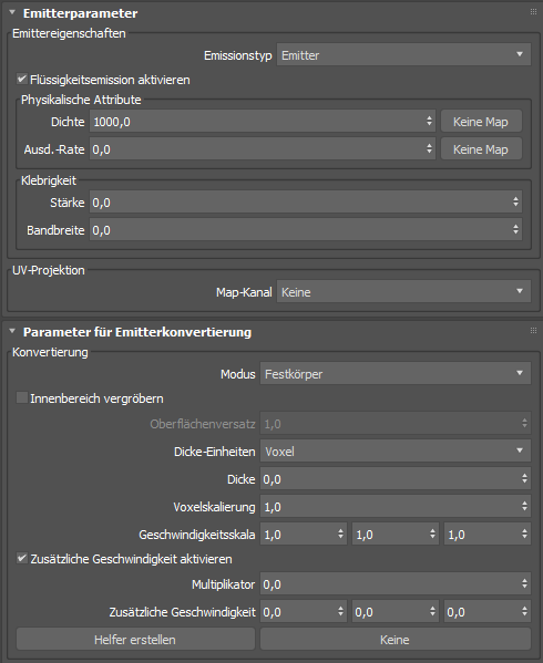 - Wenn diese Option aktiviert ist, kann der Emitter Flüssigkeiten erzeugen. Dieser Parameter kann animiert werden.