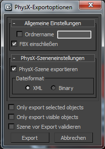 - PhysX-Szene exportieren