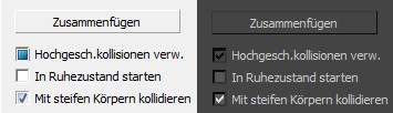 Tipp: Die meisten dieser Einstellungen sind ebenfalls in der Modifikatorgruppe für den MassFX-Modifikator "Steifer Körper" oder UConstraint-Hilfsmittel verfügbar. Aus folgenden Gründen empfiehlt es sich aber im Allgemeinen, sie im Dialogfeld "Multiobjekt-Editor" zu verwenden: