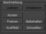 - Beschränkt Scheitelpunkte in der Gruppe an ihren Ausgangspositionen, wenn die Option Weiche Beschränkung deaktiviert ist. Wenn die weiche Beschränkung aktiviert ist, wendet MassFX Widerstand mit den Einstellungen für "Stärke" und "Dämpfung" an.