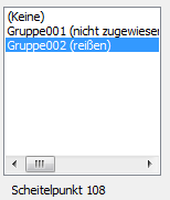 Zeigt alle aktuellen Gruppen mit dem Status jeder Gruppe: die Art der Beschränkungen, die ihr zugewiesen ist, oder die nicht zugewiesen sind. Die Anzahl der ausgewählten Knoten wird unter der Liste angezeigt. Wenn eine Gruppe markiert ist, entspricht dies der Anzahl der Scheitelpunkte, die der Gruppe zugewiesen wurden. Um eine erstellte Gruppe zuweisen, kopieren, einfügen, löschen oder bearbeiten zu können, markieren Sie zunächst den Gruppennamen in der Liste.