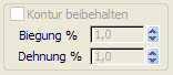 Bei aktivierter Option wird die Kontur des Netzes beibehalten mit den Einstellungen "Biegung %" und "Dehnen %" (siehe unten). Im Normalbetrieb wird beim Erstellen einer Simulation vom Modifikator "Stoff" versucht, den Stoff flach zu drücken.