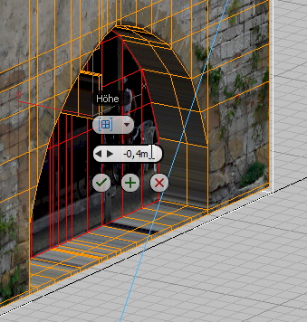 - Geben Sie in das Höhenfeld des Caddys –0,3 m für die erste Extrusion ein (die Mauerdicke).