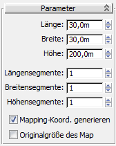Rollout "Parameter" die folgenden Parameter für den Quader fest: